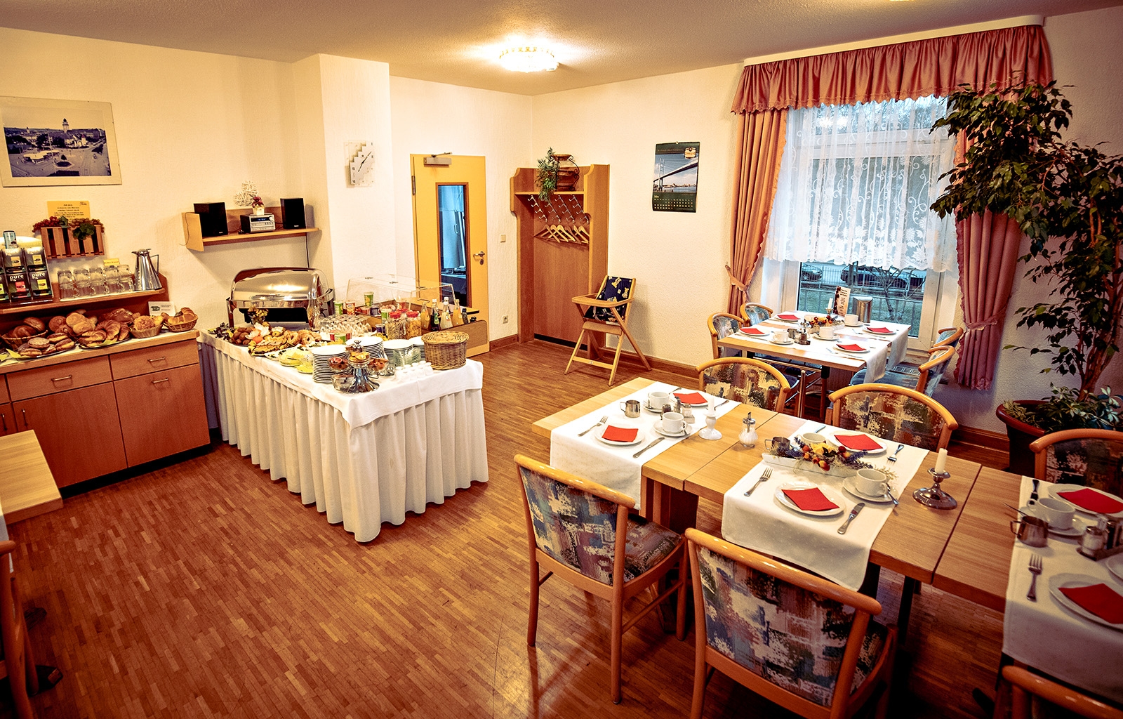 Nachdem Sie die Nacht gut und erholsam in unserem Haus geschlafen haben, starten Sie am Morgen mit vielerlei gesunder, leckerer Auswahl aus unserem reichhaltigen Frühstücksbuffet, in Ihren neuen Tag. Je nachdem ob Sie dabei lieber frische Brötchen oder Brot wählen, oder / und auch verschiedene Konditoreiprodukte wie Croisannts, verschiedene Kuchen, leckeres Blättergebäck, u.v.a.m., sind wir sicher, dass auch Sie, ganz gleich ob Sie lieber die vegane oder vegetarische oder die klassische Ernährung bevorzugen, auf jeden Fall anschließend optimal gesättigt und gestärkt für Ihren Tag sind !